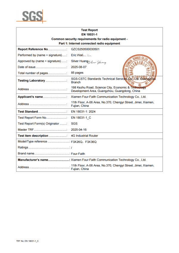 四信時(shí)刻洞察行業(yè)市場(chǎng)新需求,率先完成布局,旗下系列工業(yè)路由器產(chǎn)品通過國(guó)際權(quán)威認(rèn)證機(jī)構(gòu)審核,完全符合EN 18031-1 和 EN 18031-2 兩大關(guān)鍵協(xié)調(diào)標(biāo)準(zhǔn)。