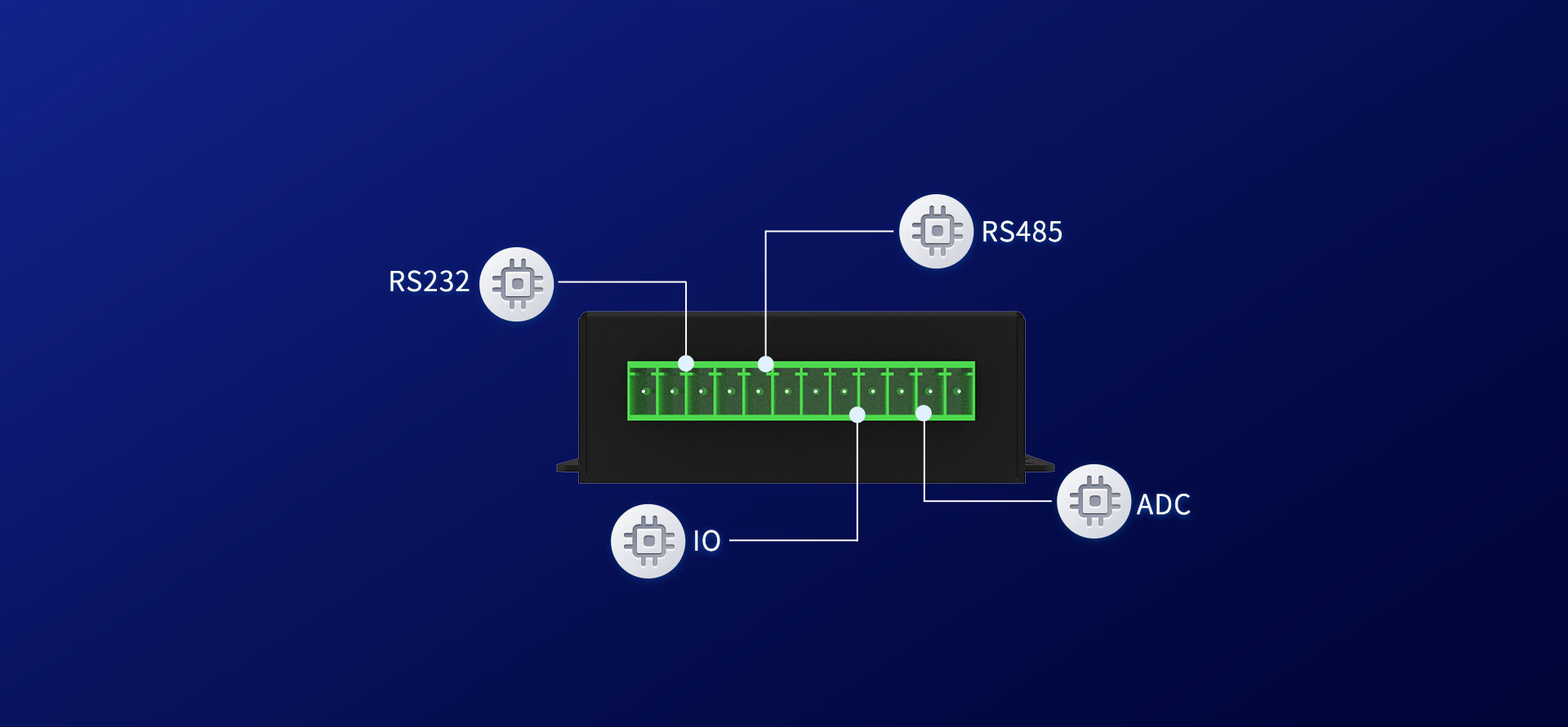 · 提供標(biāo)準(zhǔn)的RS232、RS485、IO、ADC接口,滿足不同接入需求
