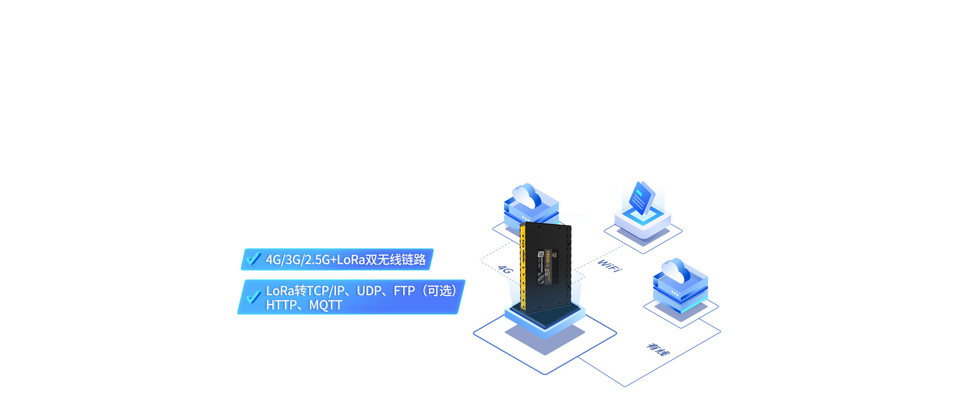 · 支持4G/3G/2.5G+LoRa雙無(wú)線鏈路