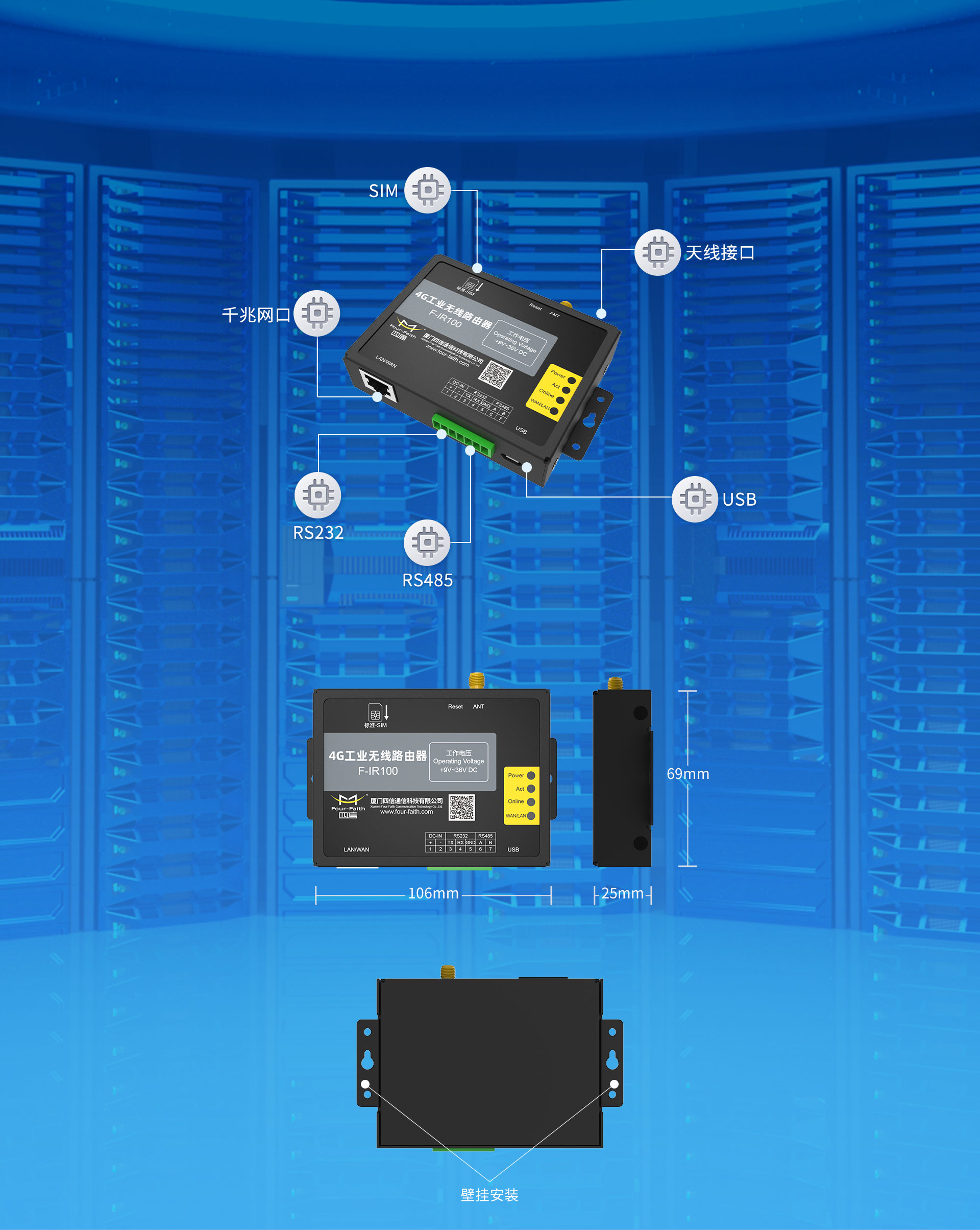 106x69x25mm(不包括天線和安裝件)