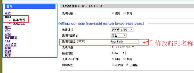 (1)設(shè)置WiFi名稱