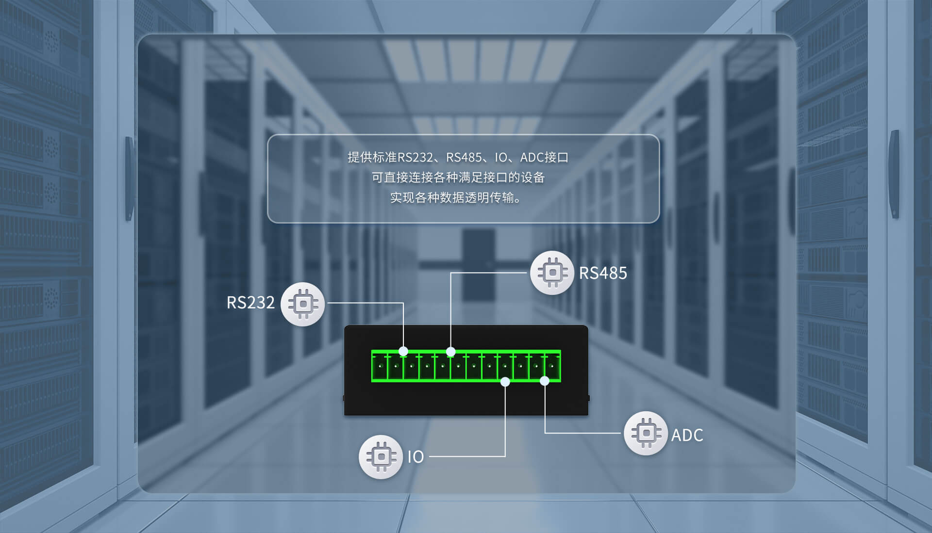 · 集成RS232、RS485、IO、ADC接口,滿足不同接入需求