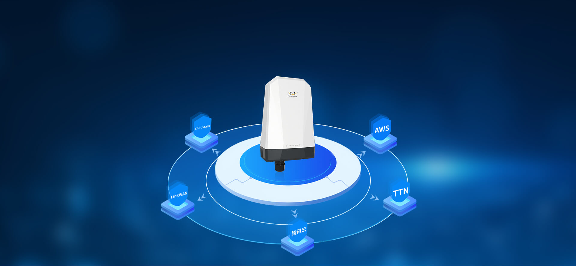 支持LinkWAN、ChirpStack、騰訊云、TTN、AWS等平臺(tái)接入